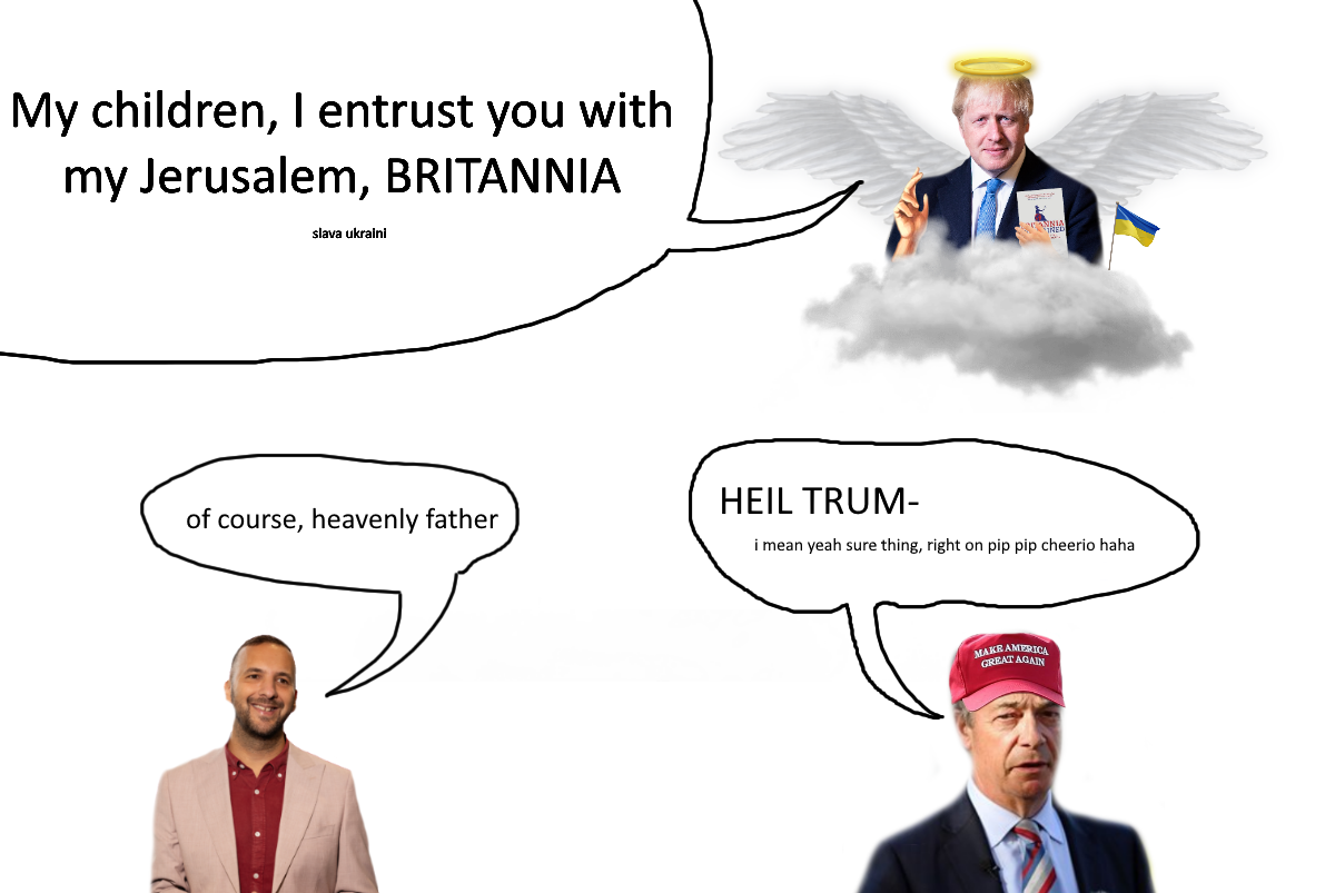 i could fashion a fairly compelling argument, for instance, that east coast Gammons from decaying Seaside Towns are actually doing Pensioner Sectarianism. that they are trying to fracture Multicultural Britain (which is the real britain i actually grew up with) with the backing of a foreign power, america, and its leader Trump, all to secure the interests of a group of people who will all be dead in twenty years tops.